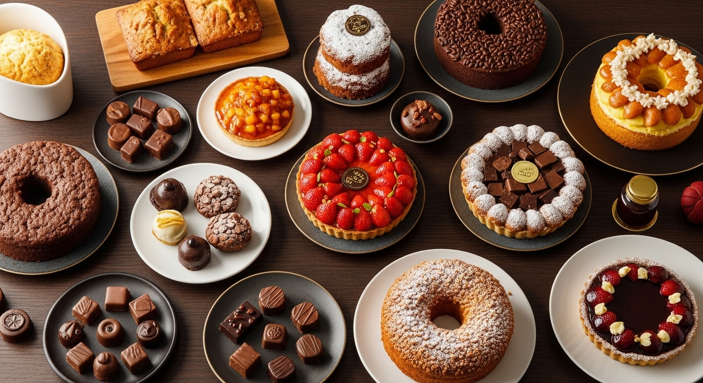ボンボンショコラの詰め合わせや、焼き菓子の豪華なアソートが選べます。