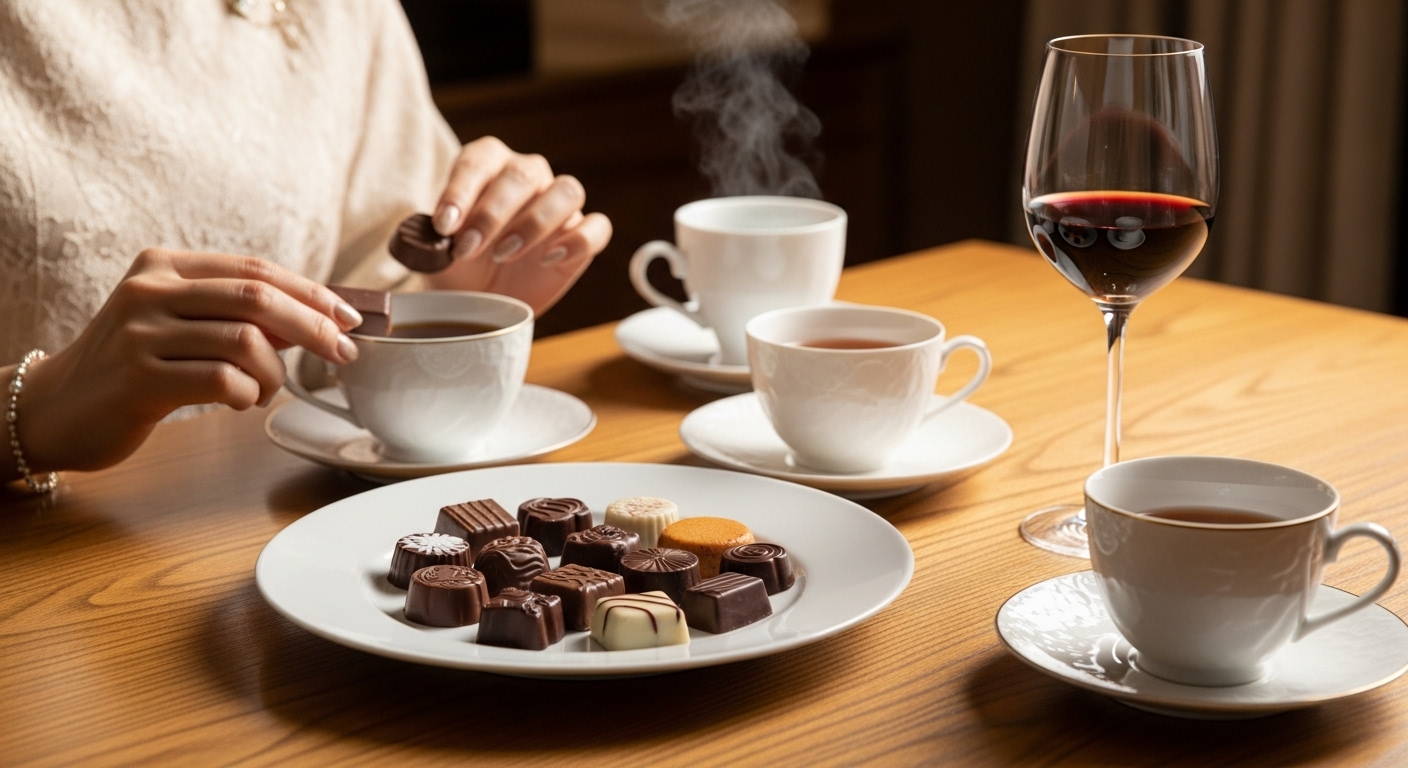 赤ワインとダークチョコレートの組み合わせは、定番ながら奥深い味わい。