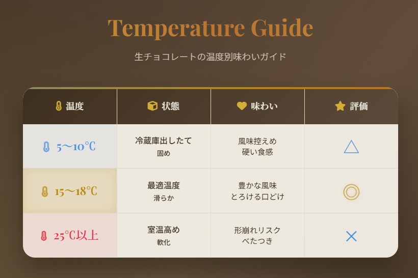生チョコレートの美味しさを最大限に引き出すには、温度管理が何よりも重要なんです。