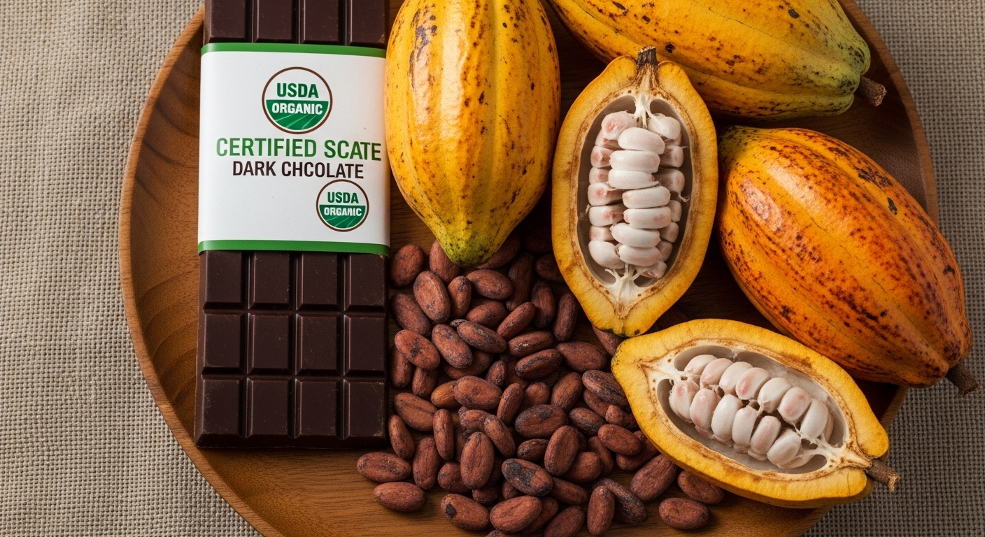 ダークチョコレートは砂糖やミルクの使用量が少ないため、有機原材料95%という基準を満たしやすくなります。