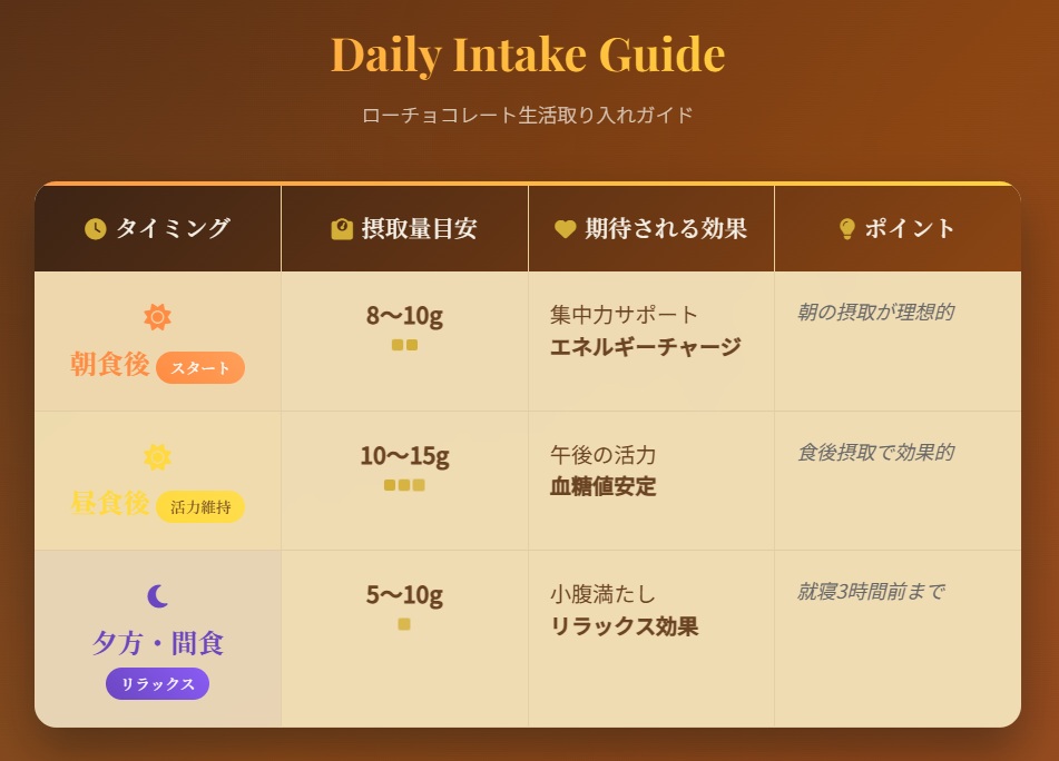 毎日の生活にローチョコレートを取り入れる際は、適量を意識することが大切です。