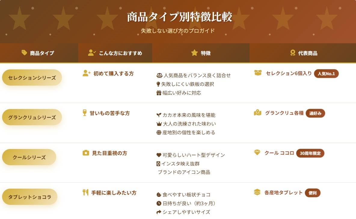これらの違いを意識しながら食べ比べると、チョコレートの奥深さに驚かれるはずです♪