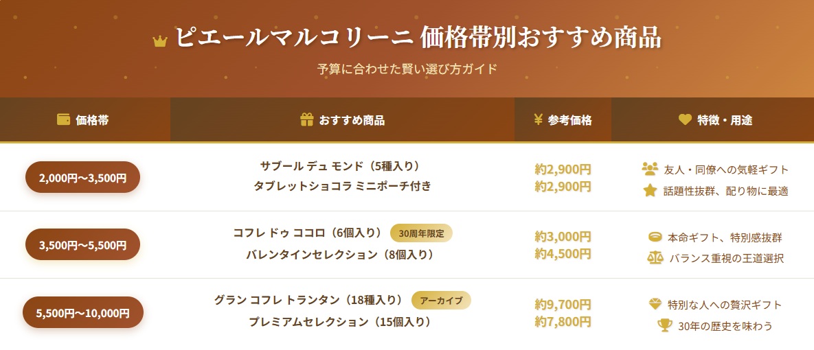 予算に応じて最適な商品を選べるよう、価格帯別の詳しいラインナップをご紹介します。