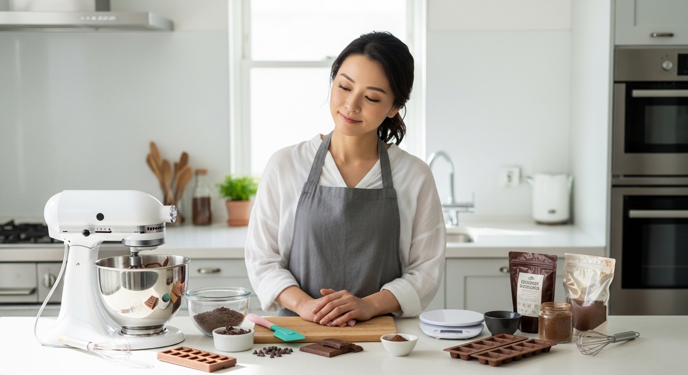 製菓用のコーティングチョコレートは、溶かすだけで使えるため初心者でも扱いやすいです。