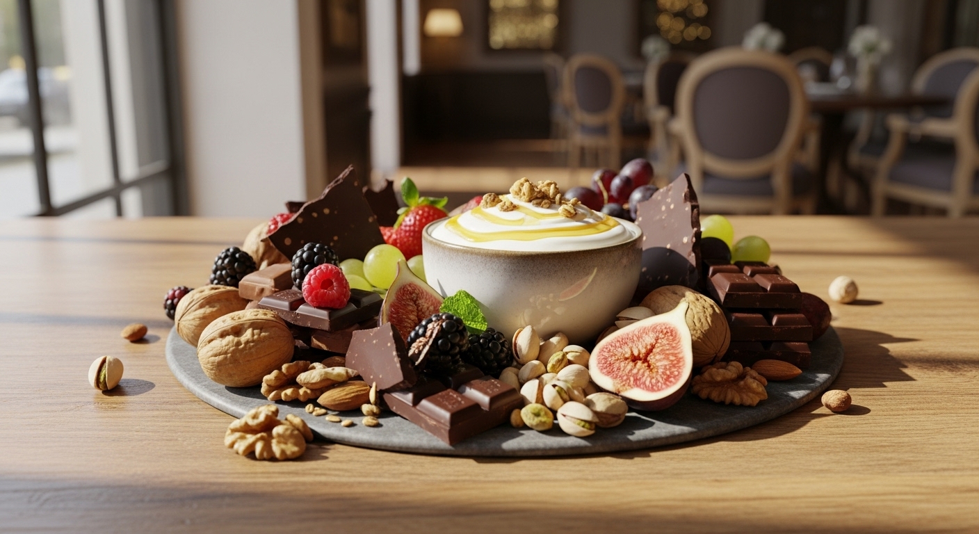 プレーンヨーグルトに砕いた高カカオチョコレートを混ぜると、手軽に栄養価の高い朝食になります。