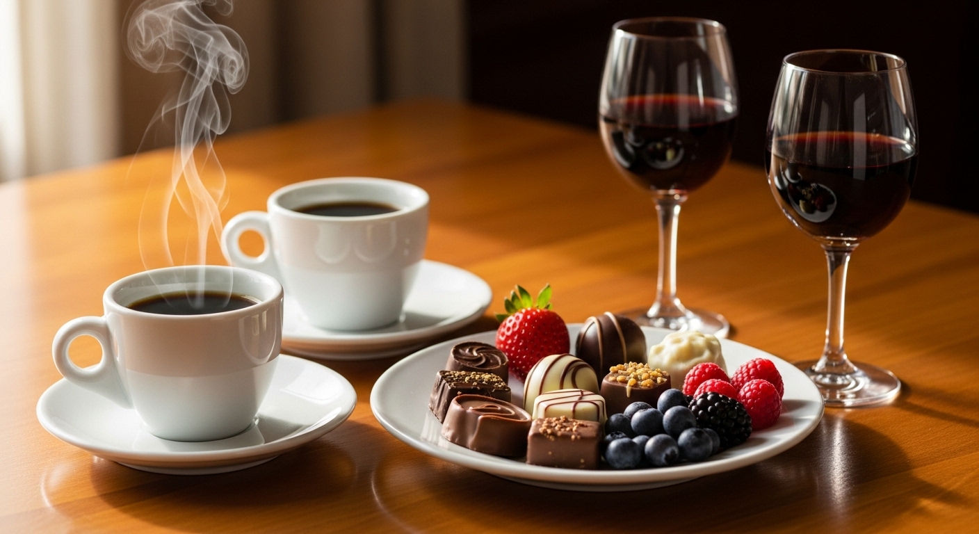 コーヒーは一口飲んだ後にチョコレートを口に含むと、口の中で風味が溶け合い、新しい味覚体験が生まれるでしょう。