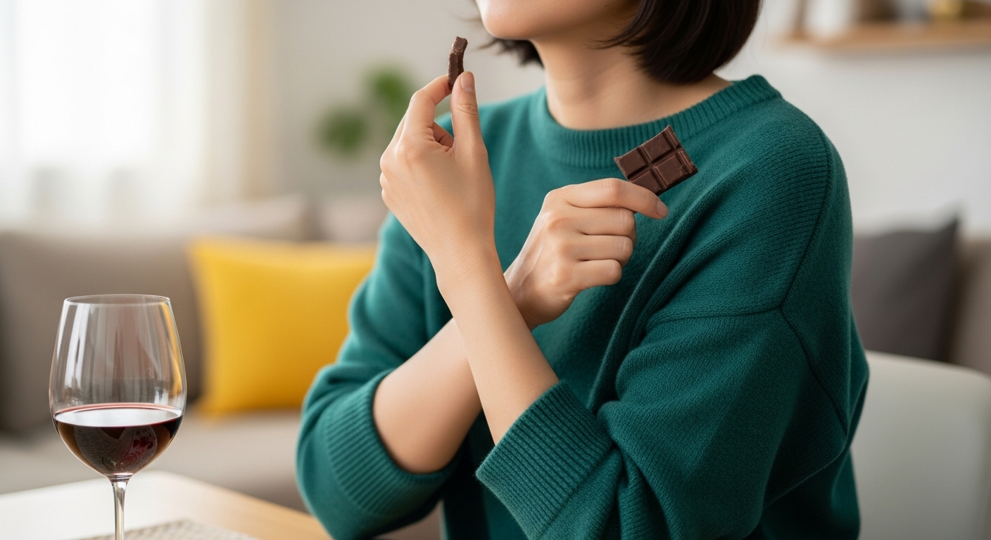 チョコレートとワインを交互に味わうと、口の中で一体化するような感覚が楽しめますよ。