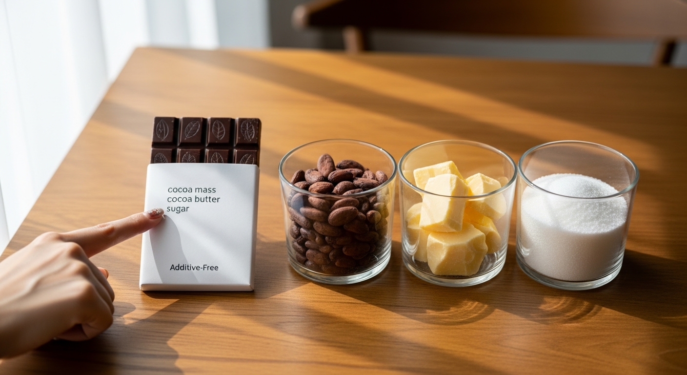 原材料表示を確認し、カカオ含有量や砂糖の種類にも注目してみてください。