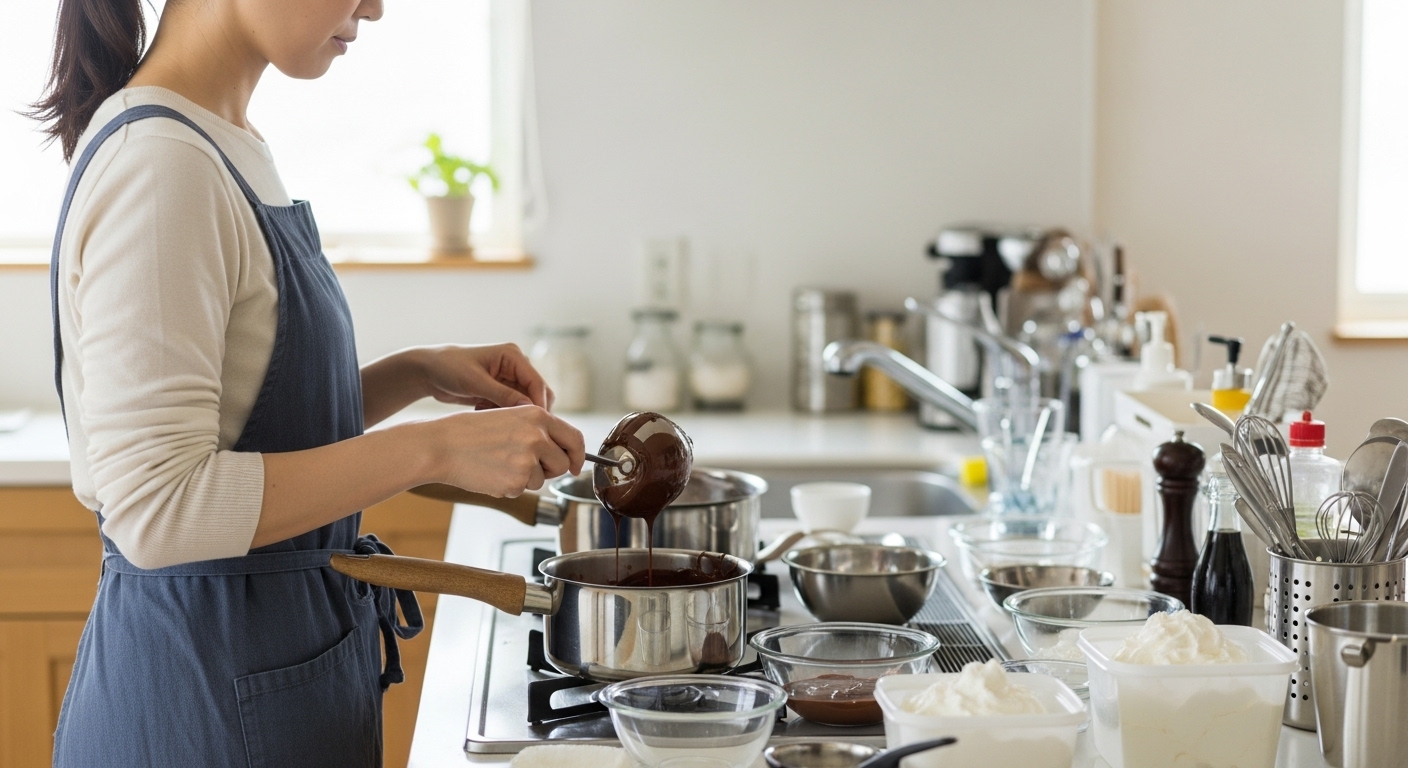 チョコレートを溶かす際は、温度が高すぎないように注意しましょう。