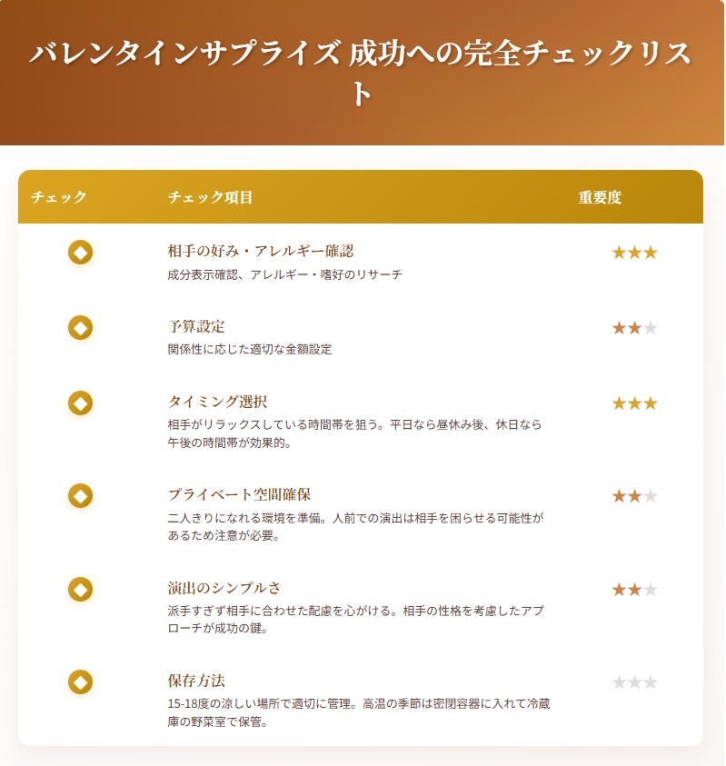 バレンタインサプライズの成功は、相手への深い思いやりと心理学に基づいた戦略的な準備から生まれます。