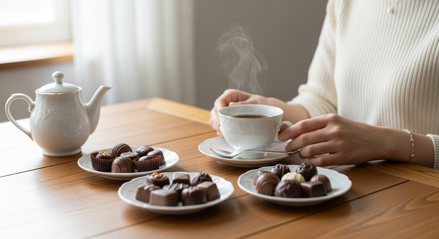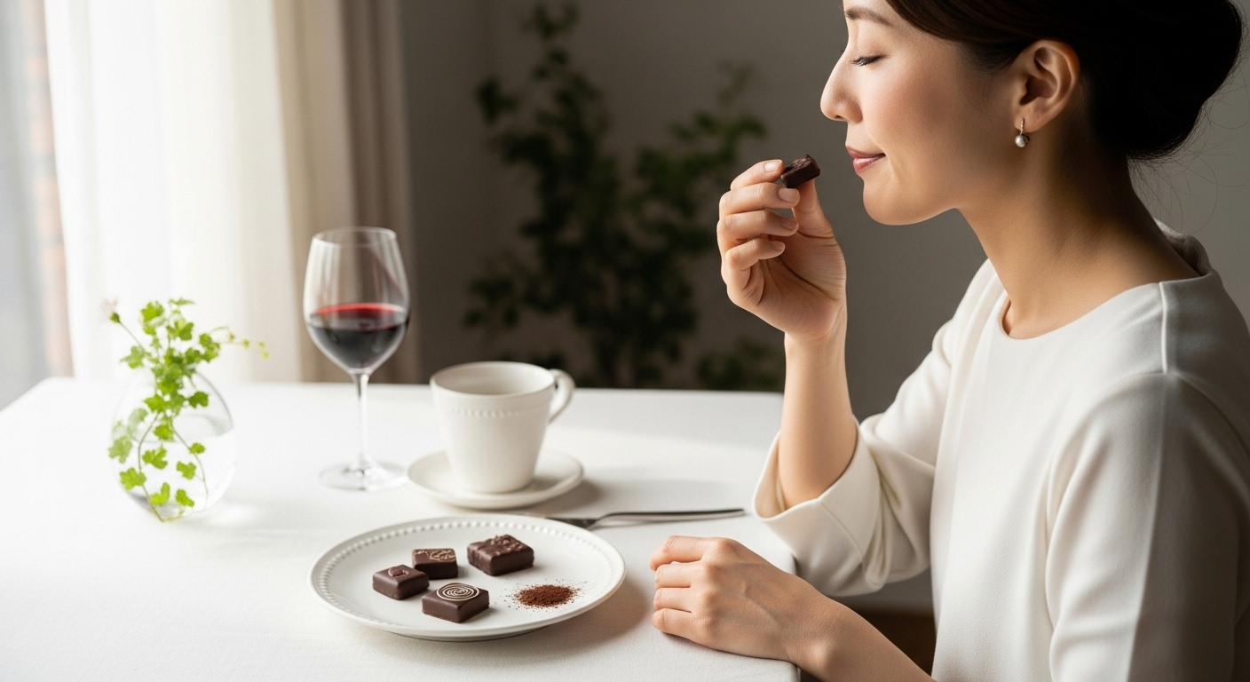 カカオ含有量70%以上のダークチョコレートや、ガナッシュたっぷりのトリュフは、少量でも深い味わいを楽しめます。特別な日には限定品を