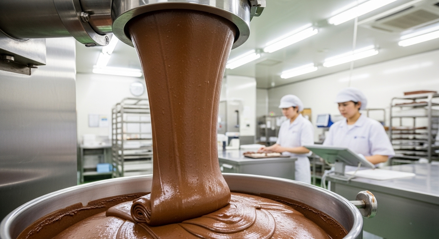 コンチングで滑らかさと風味が完成し、テンパリングであの独特な口溶けが生まれます。