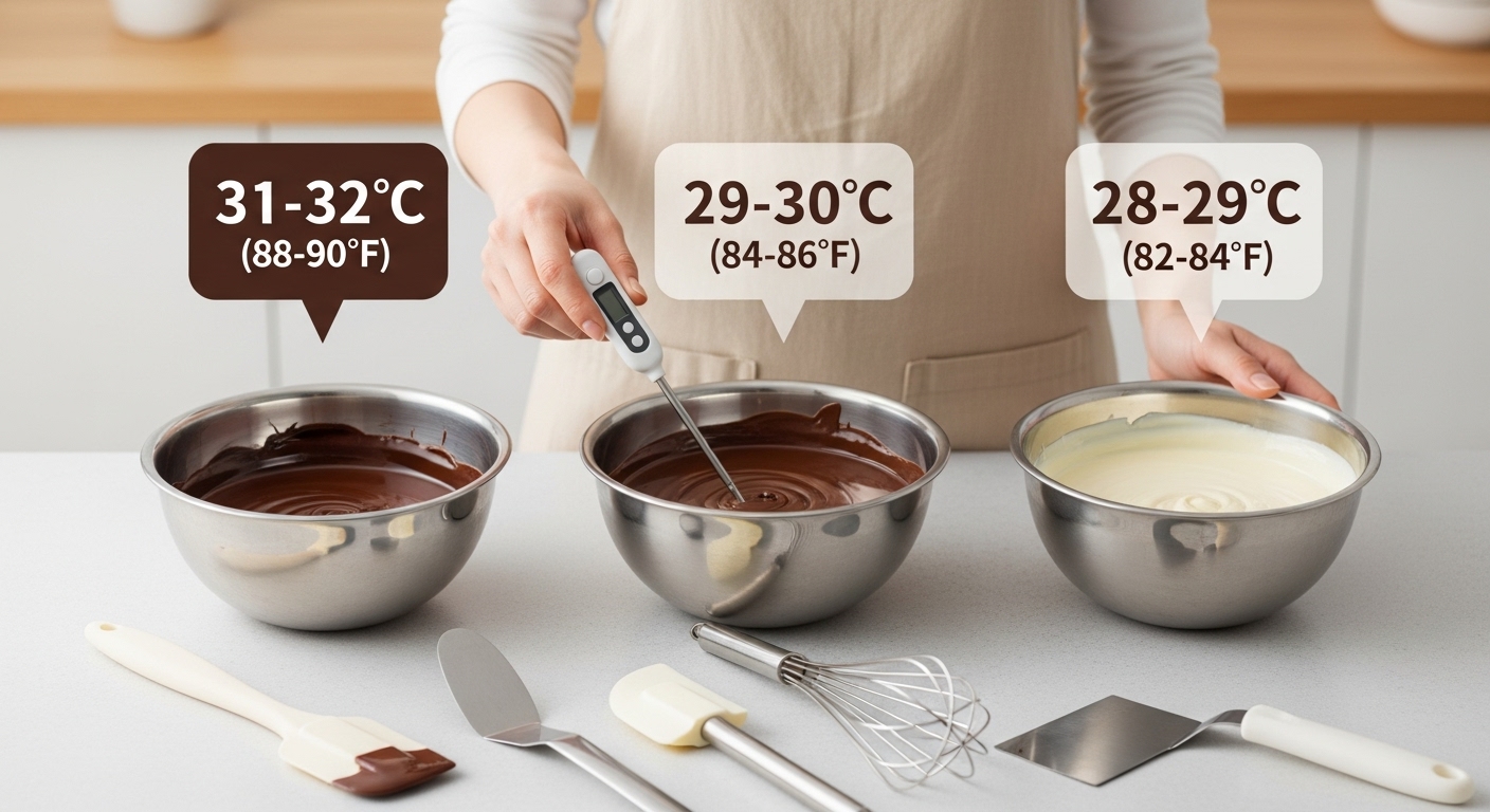 ホワイトチョコレートは最もデリケートで、低めの温度管理が求められます。