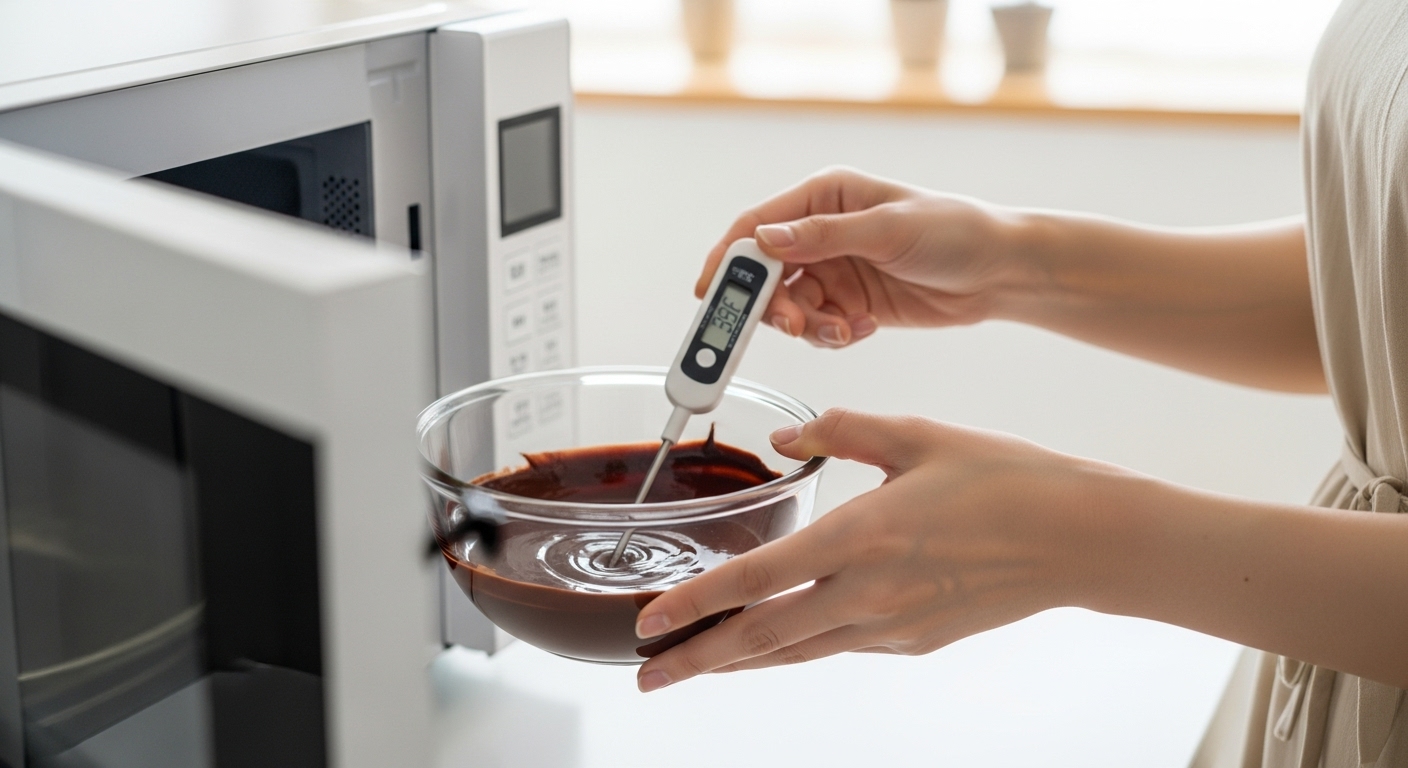 焦げてしまいます!チョコレートが完全に溶けたら、温度を確認。
