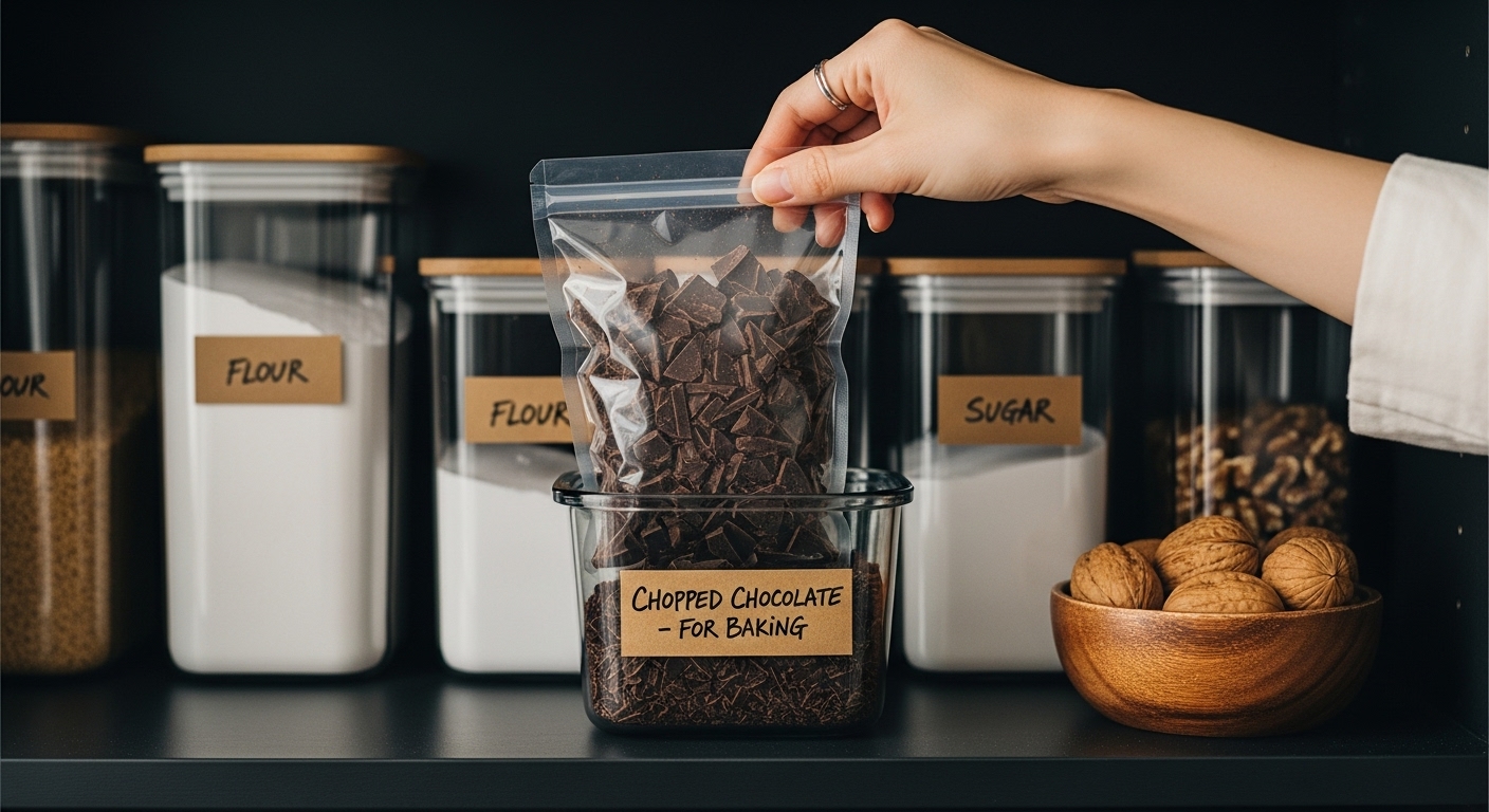 刻んだチョコレートは密閉袋に入れ、冷暗所で保存してください。