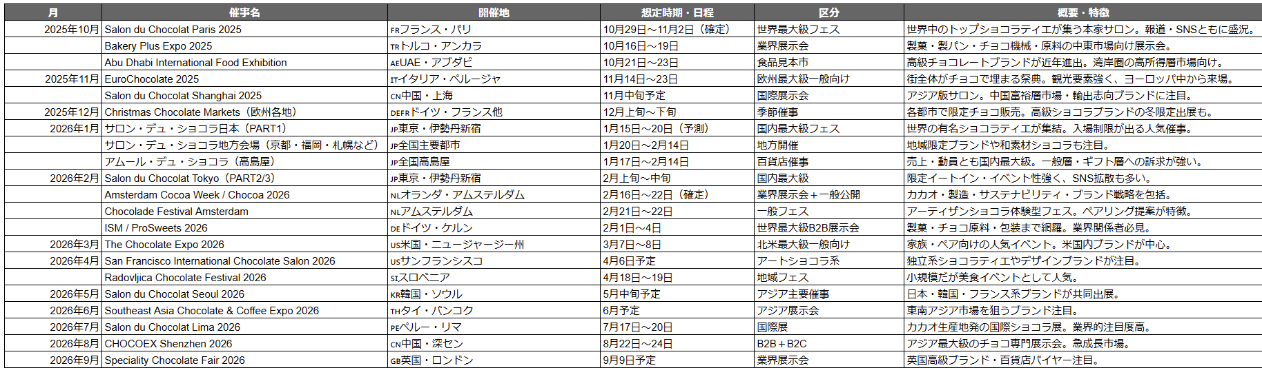 このスケジュールを活用して、あなただけの特別なチョコレート体験を見つけてください。