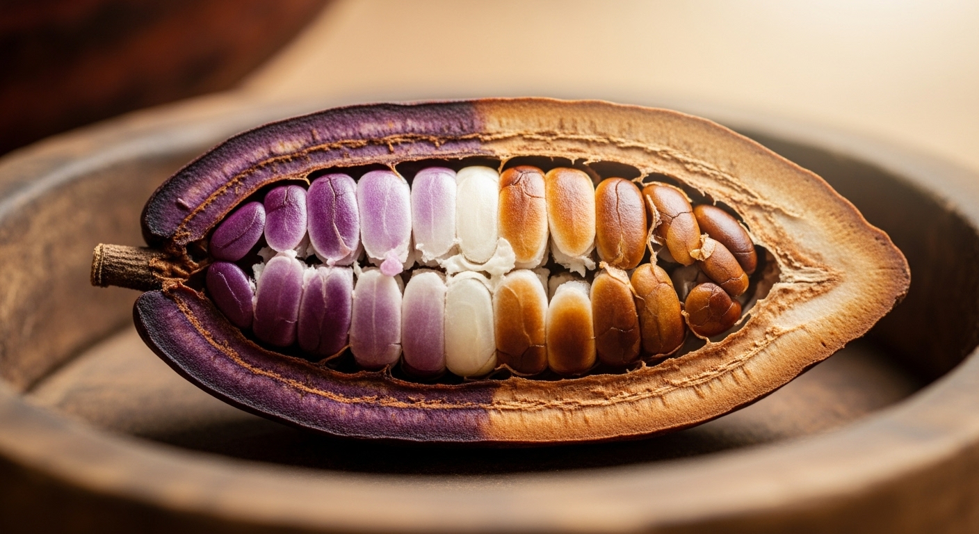 この色の変化は発酵の進行度を判断する重要な指標となり、生産現場では豆を割って断面をチェックする「カットテスト」が行われています。