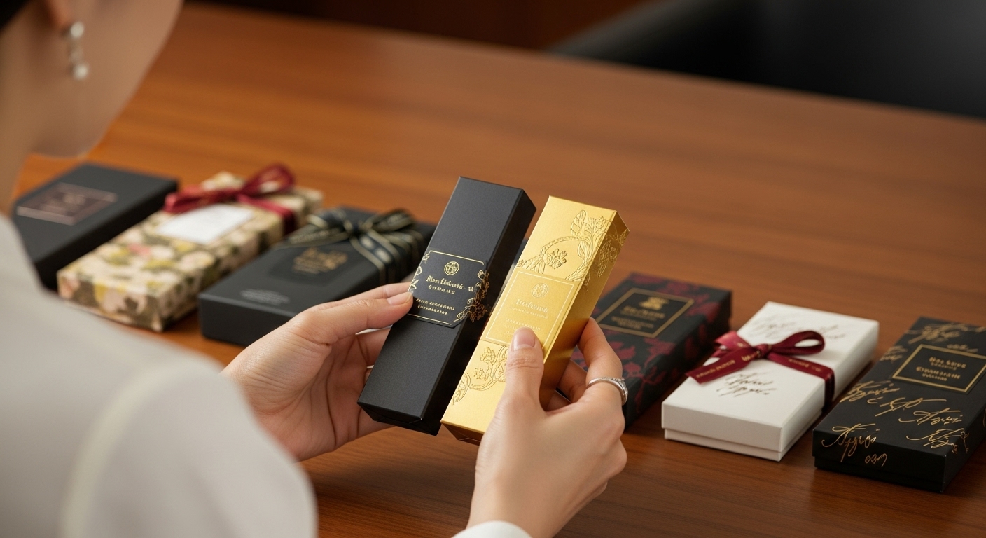 ビジネスシーンでの贈答用は、品格のある落ち着いたパッケージが好まれます。