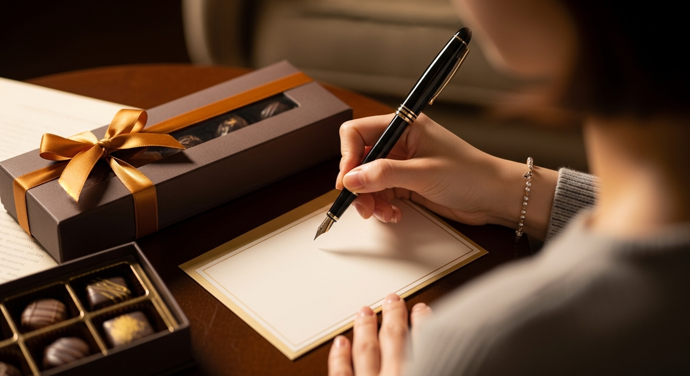 チョコの高級品を贈るときは、メッセージカードを添えると気持ちが伝わりやすくなります。