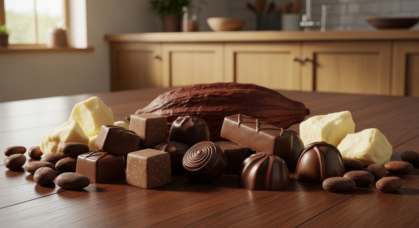 高級チョコレートには、カカオバターを使用した滑らかな口溶けや、厳選されたカカオ豆の豊かな風味があります。