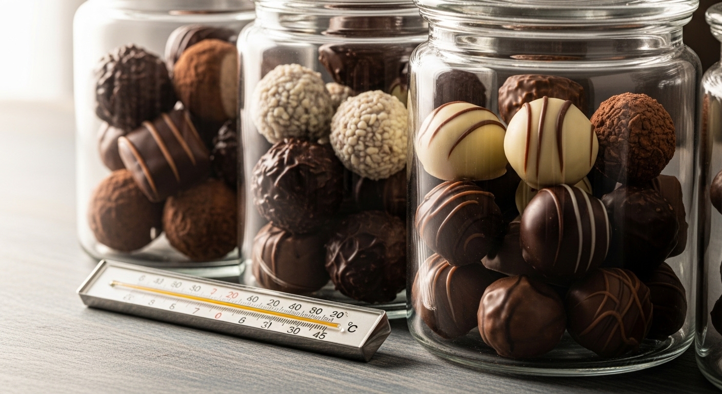 一般的に、プラリネやトリュフは2週間〜1ヶ月程度の賞味期限が多く見られます。