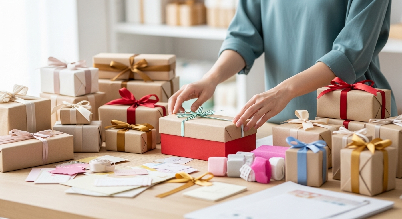 リボンやラッピングペーパーのデザインも選べる場合があります。