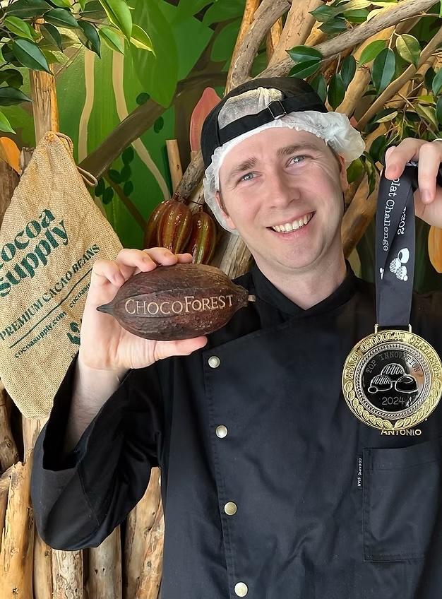 CHOCO FORESTのチョコレート職人、ポーラック・アントニオ(通称:アンちゃん)は、東欧クロアチア共和国出身のショコラティエです。 小さい頃の夢は「日本に行くこと」。ジブリ映画「もののけ姫」に魅了され、日本が大好きになった彼は、独学で英語とドイツ語を学び、26歳で夢を叶えて日本へ。これまでに40か国以上を訪れ、日本国内も20以上の都道府県を旅し、各地での食事・文化・人について興味を持ち続けています。 2014年、オーストリアの有名チョコレート工場「ZOTTER」を訪れて衝撃を受け、ビーントゥバー・チョコレートの虜に。独学で研究を重ね、オーストリアでプライベートクラスにも通いました。現在の夢は「チョコレートファクトリーを作ること」。 カカオ豆の仕入れから焙煎・製造・包装まで、全工程を店内で行うBean to Bar製法で、素材を最大限に活かしたクラフトチョコレートを一つ一つ丁寧に手作りしています。