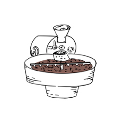 STEP1:カカオ豆は110℃の低温でじっくりと焙煎されます。